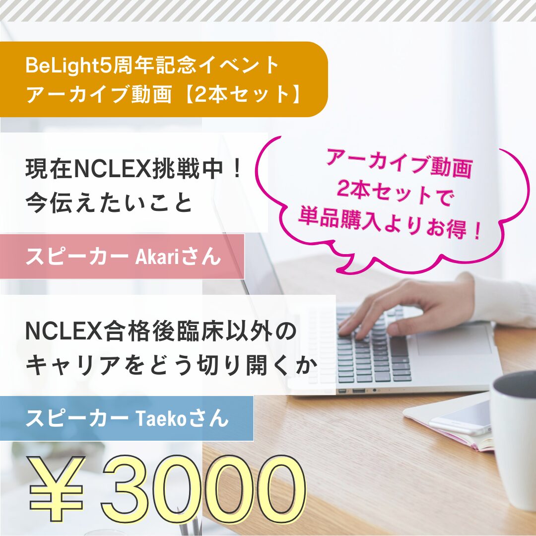 BeLightの商品一覧 2026年2月16日 by belight アメリカ看護師ピアサポートコミュニティ入会(1ヶ月)NCLEX勉強会体験オフ会体験アメリカ看護師ピアサポートコミュニティ入会(3ヶ月)アメリカ看護師ピアサポートコミュニティ入会(6ヶ月)TruMerit(旧CGFNS) Q&A動画ハワイ看護師Mitsukiマンツーマン個別相談60分5周年記念イベントアーカイブ動画スピーカーAkariさん 『現在NCLEX挑戦中!今伝えたいこと』5周年記念イベントアーカイブ動画スピーカーTaekoさん 『NCLEX合格後、臨床以外のキャリアをどう切り開くか』5周年記念イベントアーカイブ動画スピーカー2人Akariさん・Taekoさんの2本セット)